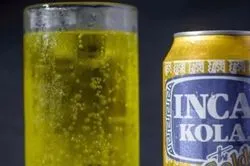 1/4 Rotisserie Chicken served with rice, beans, and an Inca Kola.