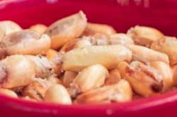 Fish cured in lime juice, spiced with aji rocoto and garnished with red onions. Served with sweet potato and Peruvian corn.
